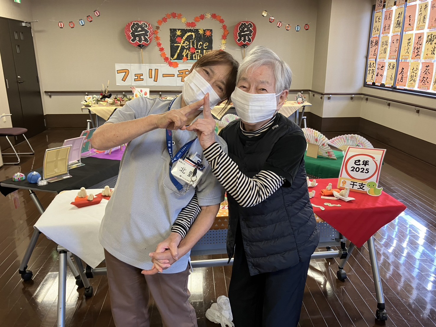 2025年に作成した作品が1階多目的に勢ぞろいし、会場は華やかな雰囲気に!