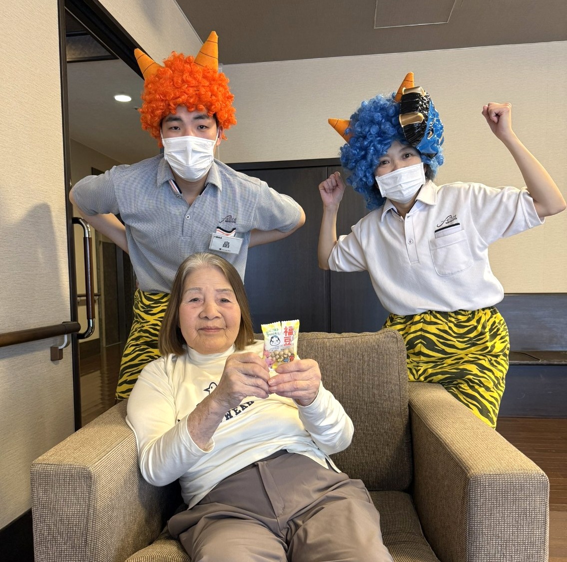 今年もスタッフが鬼に扮し、豆まきをおこないました。