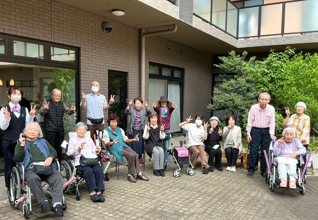【フェリーチェ三国ヶ丘 中庭で体操】